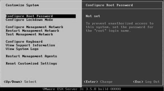 Přímo v konzoli ESX/ESXi serveru lze měnit určitá nastavení a lze přizpůsobit celý systém a určitým způsobem jej i ovládat.