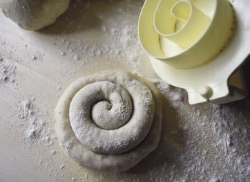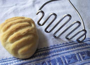 • Jindy můžete do předkynutého kousku těsta narazit vzoreček něčím, co máte doma – jde to i obyčejným kovovým mačkadlem (šťouchadlem) na brambory nebo kulatým kovovým kráječem na jablka.