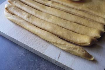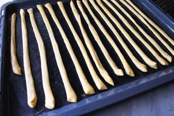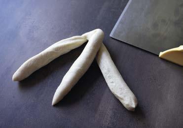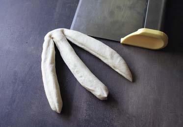 • Z těsta vyválíme delší „knedlík“, rozkrájíme ho na 5–6 cm široké řezy (každý můžeme ještě po úhlopříčce naříznout) a takhle dáme vykynout na plech (viz recept str. 208).
