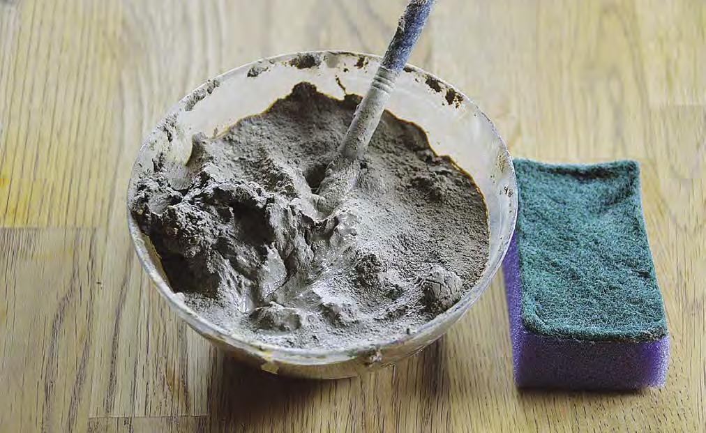 – Gumové nebo kovové škrabky k uhlazení povrchů. Mnohdy postačí houbička na nádobí.