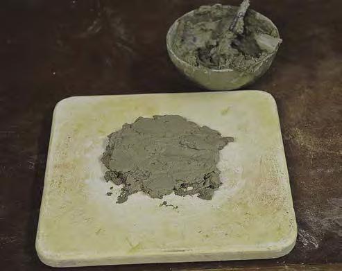 Druhý den se nám oddělí voda od hlíny, neboť hlína leží u dna a my tak vodu nad ní můžeme odsát savým hadříkem nebo houbičkou. Mokrou hmotu z misky vyndáme a rozmístíme rovnoměrně ve vrstvě silné asi 5 cm na pórovitou podložku, nejlépe ze sádry.