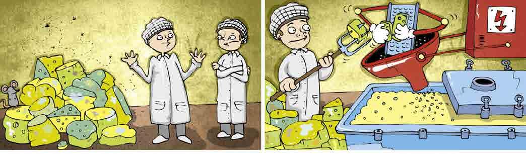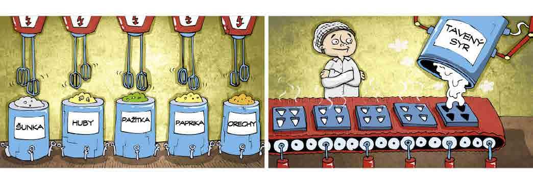 PREČO NIE SÚ TAVENÉ SYRY NA RAŇAJKY TO PRAVÉ? VÝROBA TAVENÝCH SYROV ZAČÍNA NEPODARENÝMI BOCHNÍKMI TVRDÉHO SYRA, KTORÉ SA SPRACUJÚ NA MALÉ KÚSKY.