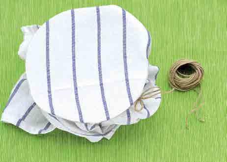 Na hlbší hrniec upevníme povrázkom čistú utierku.