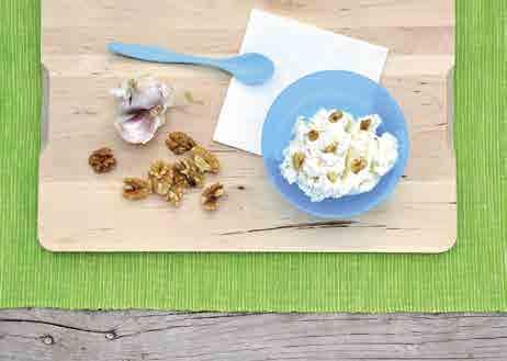 Zmiešame žervé, prelisovaný cesnak a nadrobno posekané orechy a podľa chuti osolíme.