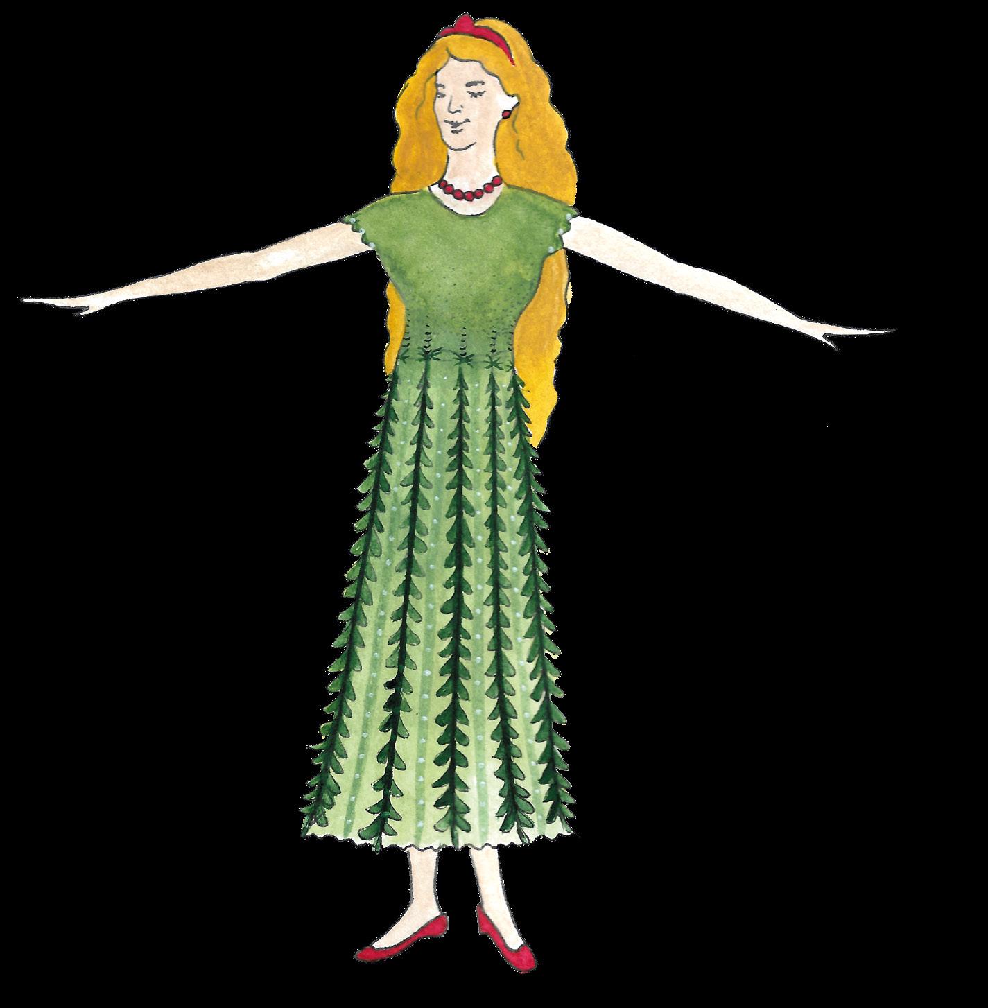 Na sobě měla nádherné zelené šatičky, které vypadaly skoro jako lístky kapradin. Potkal ji náhodou, když se promenádoval kolem její