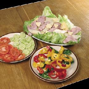5 Nakrájenou zeleninu skládejte ozdobně na mísu mezi sýry a šunku, střídejte barvy i tvary.