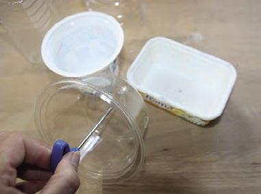 3. Do spodní části nádobek uděláme nebozezem několik dírek pro odtok vody.