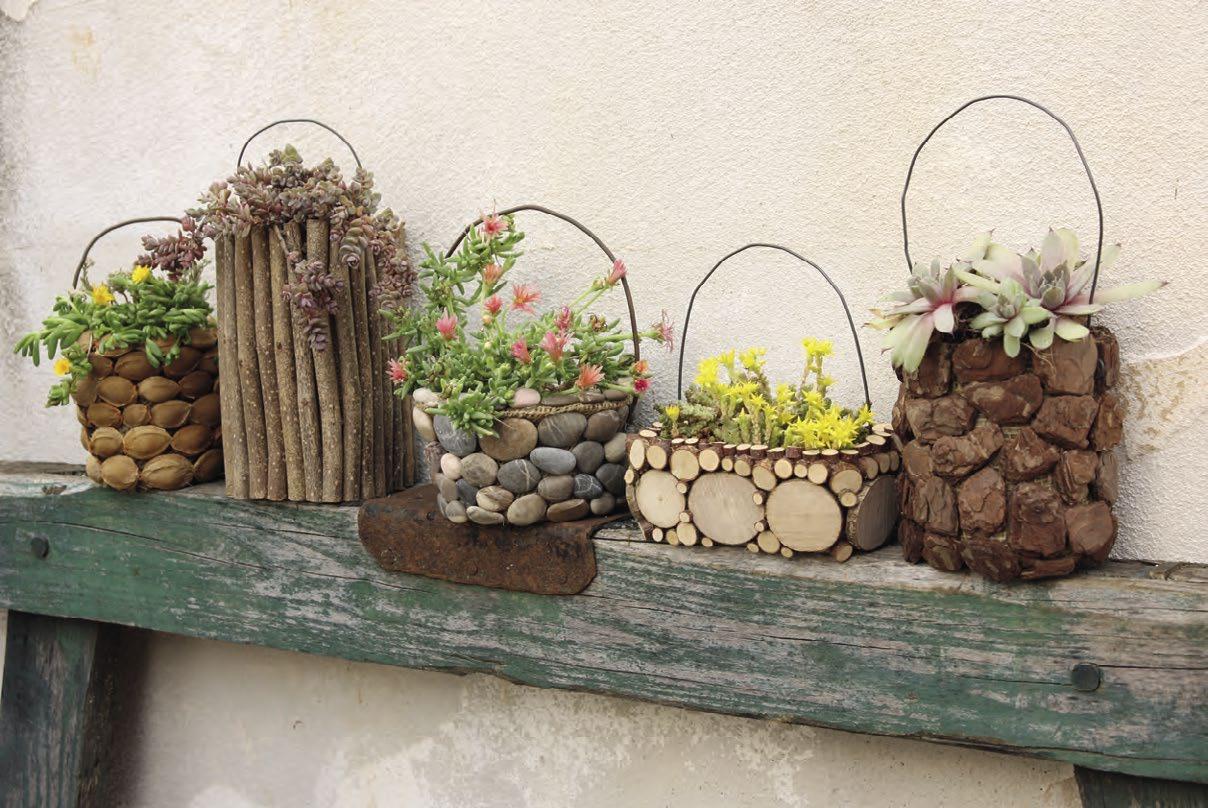Co budeme potřebovat: plastové láhve a kelímky různých tvarů a velikostí • nůžky • • univerzální lepidlo (zde Pattex odolný proti vodě) • štětec • • pytlovinu (nebo jinou tmavou látku) • nebozez • silnější drát • kleště • • přírodniny (zde větve různých tlouštěk, kůra, pecky z meruněk, kamínky) • • tavicí pistoli • kolíčky na prádlo • písek, hlínu a skalničky •