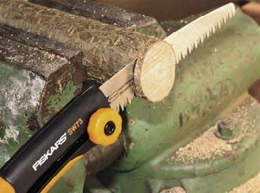 10. Do svěráku uchytíme širší větev a pilkou na dřevo ji nařežeme na kolečka (tloušťka asi 3 mm).