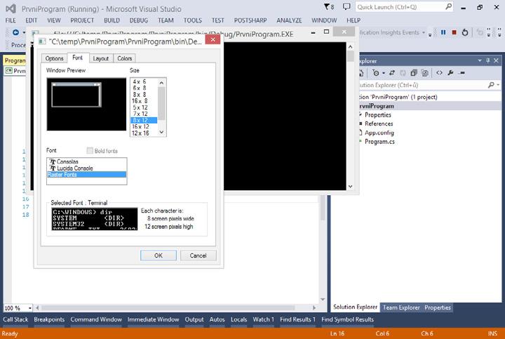 Obrázek 1.7 Nastavení fontu příkazového řádku