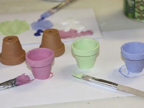 7 Hliněné květináčky natřeme akrylovými bar vami, necháme zaschnout a nátěr podle potřeby opakujeme.