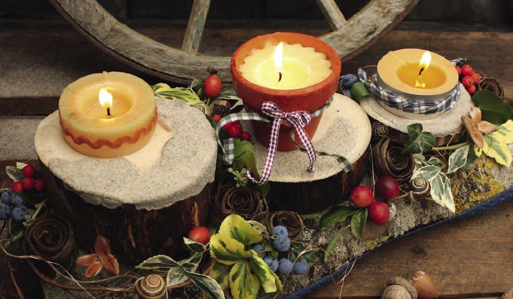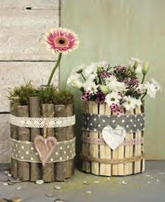 r u k ama . A p r ávě t o , c o se n as ky t n e, mě in sp ir uje . V kotelně se válí krabice, ve sklepě staré zavařovací skleni ce. V dřev n í ku p ol í nk a, na za hr adě p o d bříz ou větv i č ky, u p ot ok a ro ste proutí, n a k aždém kroku mec h a stromy nabízí, hlavně na podzim, takové bohatství, že nevíte, co si vybrat dříve