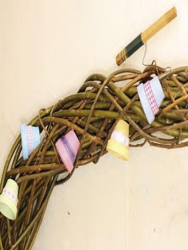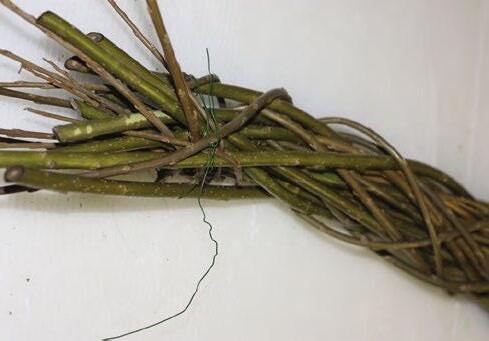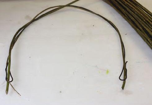 2 Následně začneme vrbové pruty na drát namotávat, přičemž střídáme směry – jeden vždy obtáčíme zprava doleva a dr u hý v prot isměr u. Konce pr v ních několika prutů nastrčíme do oček na konci drátu