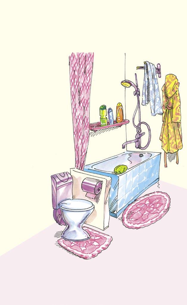 Na toaletě / na záchodě došel toaletní papír. The toilet paper has run out. Večer sedíme u televize v obývacím pokoji. We spend the evenings watching TV in the living room.