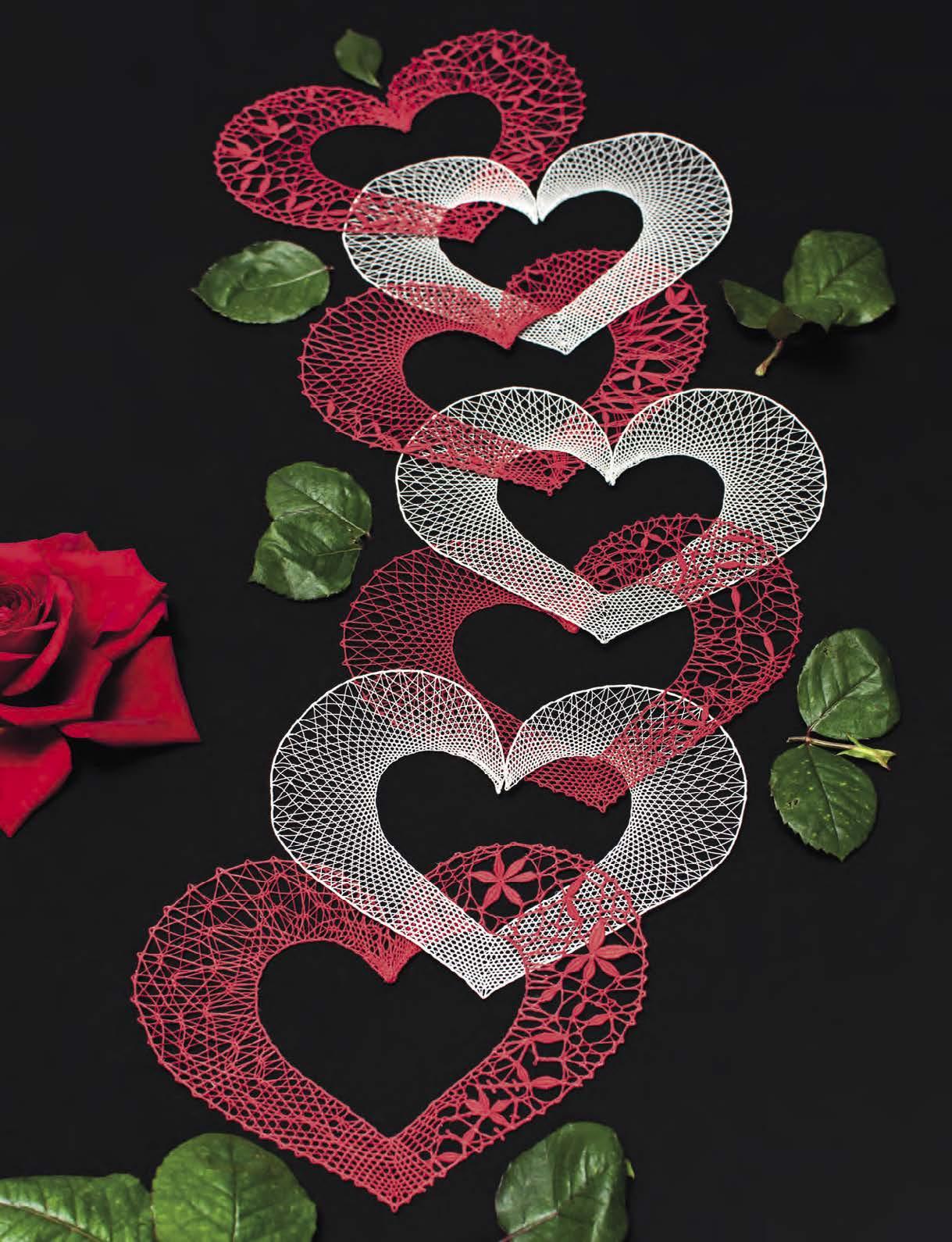 už jsem si sama myslela, že všechno, co umím, bylo napsáno a vydáno a není dále o čem psát. Při každodenním setkávání s krajkou v lektorských kurzech a při realizaci vlastních námětů však vidím, že se stále vynořují nové a někdy i provokující nápady, jak krajku učinit něčím zajímavou, novou, jinou. Tato moje zkušenost mě vyzvala k další práci, a proto máte před sebou v pořadí již pátou knihu Paličkování s láskou. Je určena vám všem, kterým paličkovaná krajka učarovala a chcete se dále tomuto krásnému řemeslu věnovat a rozvíjet ho. Základní technikou je „pouhý“ polohod a jeho možné variace, které vám představím nejdříve na vzornících a použiji je i do cvičných prací. Někdo může namítat, že jsou to techniky známé, staré a používané. Mou snahou bylo dát jim logický řád, název a značení. Mnohé z vás možná zklamu barevností. Kniha nehýří barevnými krajkami, ale je zklidněná bílou klasikou, která vyzdvihuje techniku a o tu mně jde především. Kniha má dva snad všem blízké motivy. Je to motiv srdce, který se tradičně objevuje v různých podobách a s různým posláním v lidové kultuře, je zároveň všední i nadčasový tak jako láska a přátelství. Jednotlivá srdíčka jsem věnovala pro potěšení i konkrétním osobám, ať už ze své rodiny, nebo přátelům a známým, jejichž životní příběhy znám.