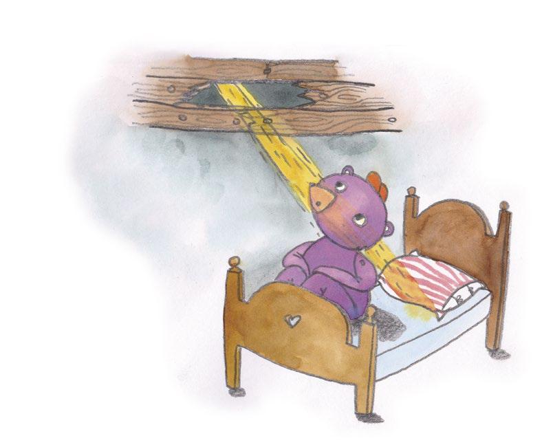Když však měsíc za chvíli zasvítí a nahlédne do místnosti, co to nevidí? Z díry v podlaze nemotorně vylézá nahoru malý plyšový medvídek. Funí a heká, protahuje se, zavrtí ocáskem a roztančí se po místnosti.