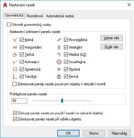 Obrázek 3.10 Dialog Nastavení vazeb, karta Geometrická