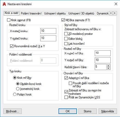 Obrázek 3.8 Dialog Nastavení kreslení, karta Krok a rastr