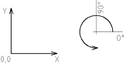 Kladný směr měření úhlů je proti směru hodinových ručiček, přičemž nula je položena v kladném směru osy X.