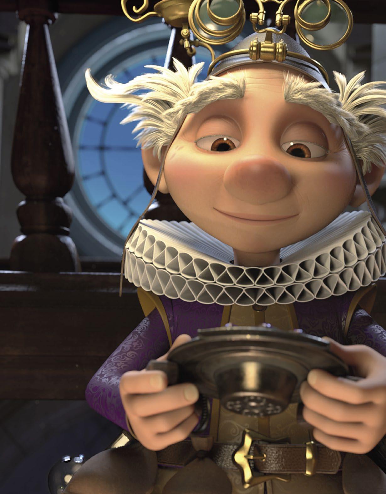 „Ale Mistře, to nemůžete,“ přiběhl jiný mužíček, tělo tvořené spoustou knih, z nichž ta poslední, která mu svírala krk jako límec, byla rozevřená. Místo čepice měl na hlavě velkou žárovku, patrně na znamení, že mu to myslí. Však se mu také říkalo Chytrák.