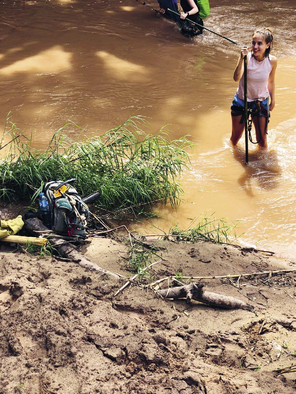 Ještě dvě a půl hodiny cesty a ty už jsi úplně zesláblá. Um ti bere krosnu a nalije do tebe něco sladkýho. Tři dny absolutně bez signálu, žádná civilizace. Hodiny, spíš dny do nemocnice. Konečně dojdeme k vodopádu. Sjedeme ho jako Tarzan. Voda je oranžová. Je to, jako kdybychom byly uvnitř dokumentu. Je ledová a léčí.