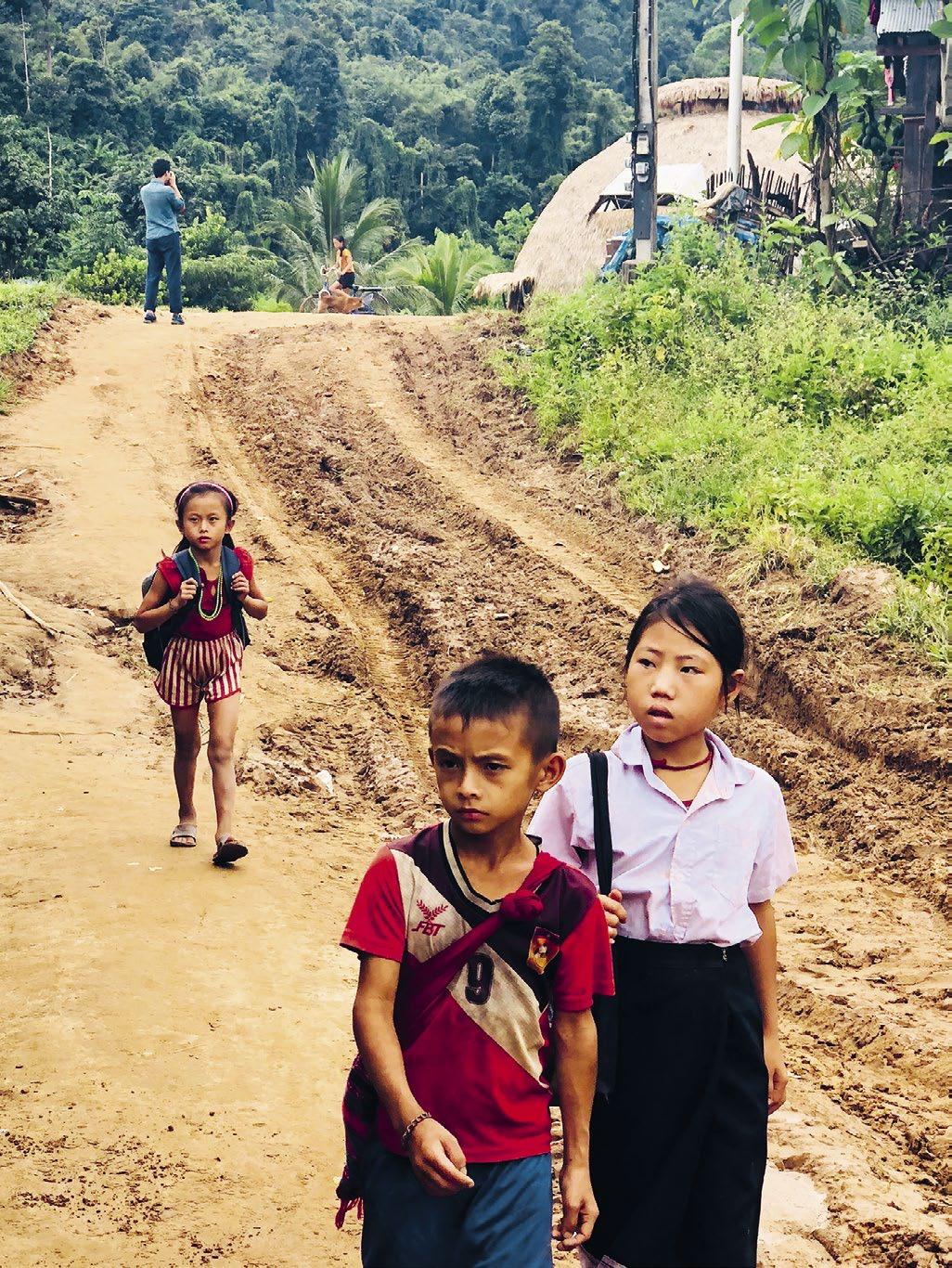 Komunistická země, běží mi hlavou, když se po dvanáctihodinový cestě snažíme přejít přes hranice. Zavírají v šest a nezajímá je nic. Mě zajímá jejich džungle. Takže se usměju. Nepomůže to. Ráno nestíháme. Na kafe a bagetu ale máme čas vždycky, takže jsme pak bez peněz. Jedeme upraveným, nejspíš terénním tuk‑tukem a po cestě přibíráme indiánku z hor poblíž thajských hranic. Nůši s barevnejma hadrama u kolenou, dítě drží celou cestu v levý ruce, hlavičku má úplně zakloněnou.