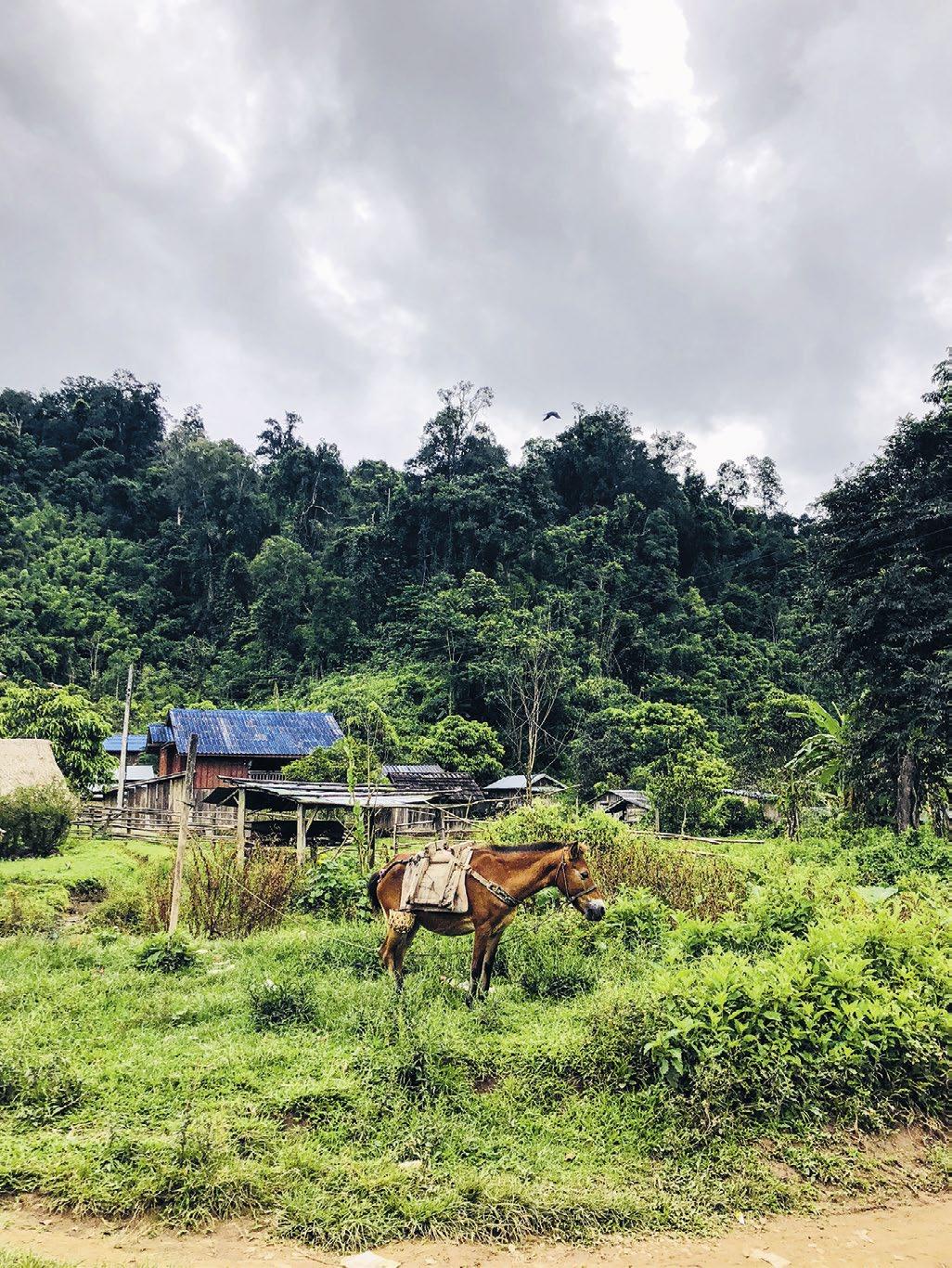 Přicházíme k našemu domu ve stromě. Je to jednoduchá stavba padesát metrů nad zemí. Na stromě, který byl vybraný pro svoje stáří, sílu a vytrvalost. Koukáme daleko do lesů. Giboní miminko. Vypadá, jako že letí. Spíme na jednoduchých tvrdých matracích. Máme moskytiéry, čelovky a vodu. Jídlo nám uvařili lidé z vesnice hluboko a je to to nejlepší jídlo na světě. Náš průvodce nalévá domácí happy water z lepivé rýže. Jeho rodina bydlí ještě dva dny a dvě noci cesty pěšky lesem – a už teď jsme hodně hluboko v džungli.
