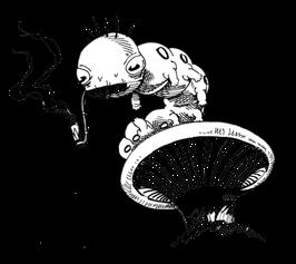 Die blaue Raupe – sitzt auf dem Pilz und raucht aus einer Wasserpfeife.