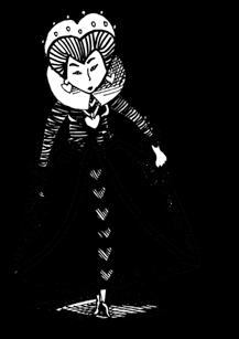 Srdcová královna – vládne se srdcovým králem celému balíčku karet, téměř každou minutu dává rozkaz k popravě.