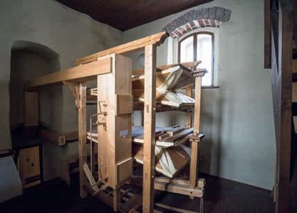 Vzduchové hospodářství varhan v Kájově tvořené trojicí klínových měchů