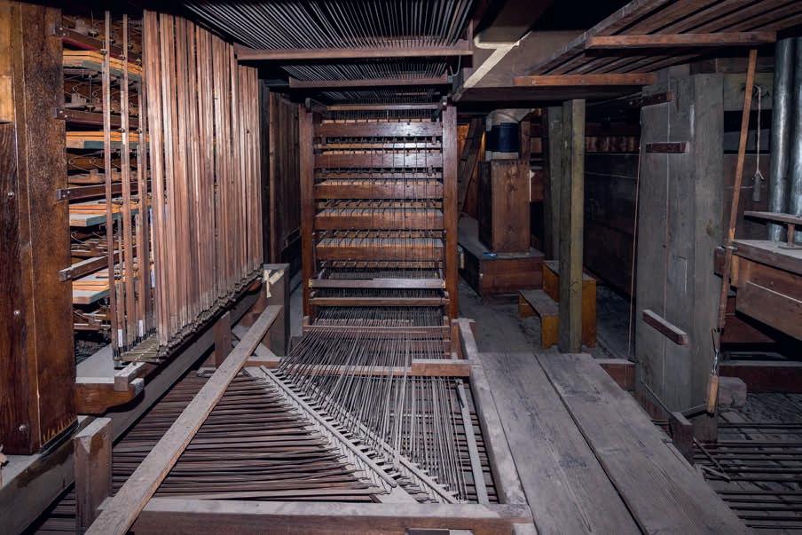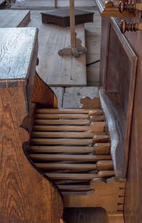 Dřevěné pedálové píšťaly stojící na pedálové vzdušnici