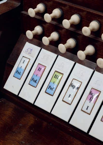 buď ulehčují jeho činnost, nebo mu umožňují ovládat další zařízení, jako je například rejstříkové crescendo (válec otáčením zapíná řadu rejstříků a tím se stupňovitě zesiluje zvuk), či šlapka žaluzií, která otevírá či přivírá uzavřenou část varhan, ve které jsou umístěny píšťaly a tak umožňuje plynulou změnu hlasitosti. Hrací stoly mohou být vloženy do nástroje zepředu, zezadu či z boční strany, u nástrojů se dvěma a více manuály také do zadní části positivu v zábradlí. Poměrně brzy – snad i poprvé ve světě – se v českých zemích objevuje volně stojící hrací stůl. Ten se totiž uvádí už na konci 17. století v kostele sv. Salvátora v Praze. Do 19. století byly běžné manuálové klaviatury s opačnou (inverzní) barevností, kdy spodní klávesy byly často zhotoveny z tmavého dřeva (švestka, eben). V českých zemích bylo až do 19. století naprosto běžnou praxí vystavění první oktávy manuálu a pedálu jako tzv. krátké. Tato krátká velká oktáva postrádá tóny Cis, Dis, Fis a Gis; na místo uvolněných