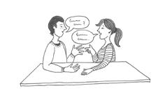 b) Minidialogy prezentujte ve skupině. Ostatní musejí říct, ke kterému obrázku minidialog patří. Mluvíte, minidialog nečtete.