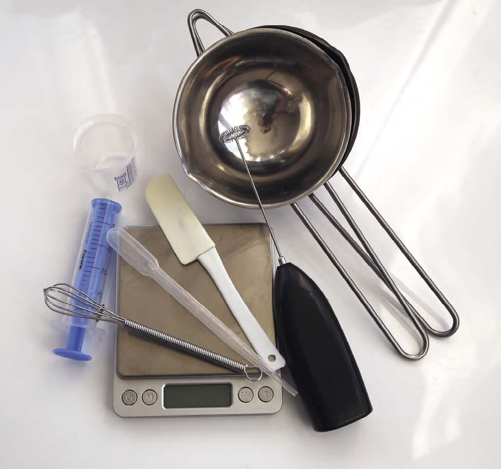 Na výrobě kosmetiky je báječné, že ze začátku nepotřebujeme žádné extra vybavení. Většinu toho, co potřebujeme, nalezneme zpravidla v kuchyni. Pro výrobu kosmetiky si nicméně vyhradíme zvláštní nádobí a pomůcky, které k ničemu jinému nepoužíváme. Vše potřebné skladujeme zvlášť.