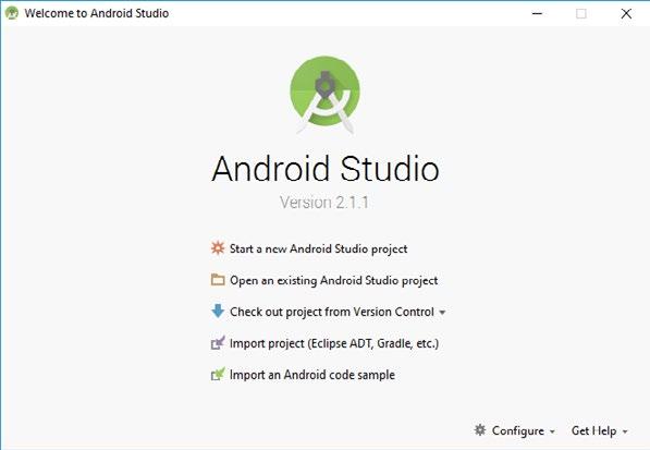 Android Studio jako oficiální nástroj na vývoj aplikací pro Android je k dispozici ke stažení na stránce developer.android.com pro platformy Windows, Linux a macOS. Dříve než zahájíte instalaci, nainstalujte balík Java SE Development Kit (viz předchozí podkapitolu). Instalace Android Studia je jednoduchá a proběhne doslova na jedno klepnutí. Stačí stáhnout instalační soubor a spustit ho.
