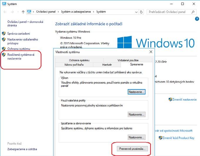 Obrázek 1.4: Rozšířené systémové nastavení Windows 10