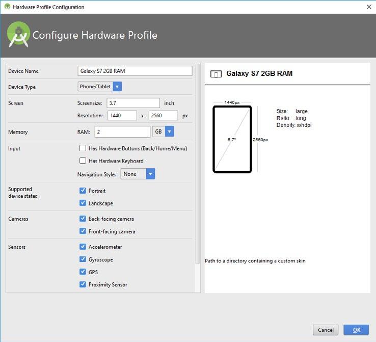 Například potřebujete emulátor Samgungu Galaxy S7 Edge se 4 GB RAM a displejem QHD s tím, že vám budou stačit 2 GB, abyste příliš neukrojili z paměti vývojářského počítače. Vyberte nejvhodnější podobné zařízení, například Nexus 6P, a klepněte na tlačítko Clone Device. Upravte velikost paměti.