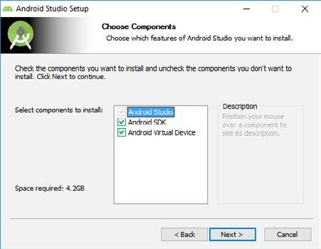 Obrázek 1.7: Android Studio – výběr komponent k instalaci