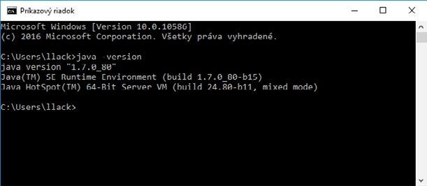 Obrázek 1.1: Identifikace nainstalované verze JDK