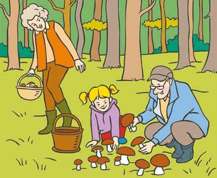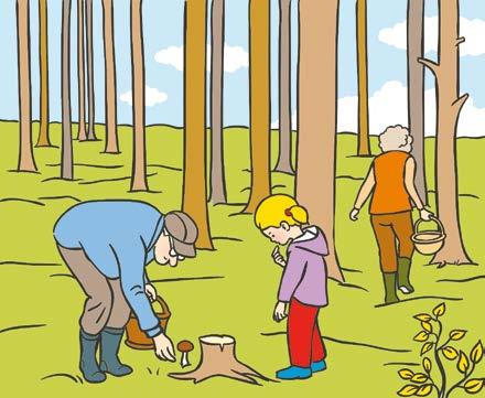 Prohlédni si obrázky a vysvětli, co se na každém obrázku děje. Potom obrázky seřaď, jak mají následovat za sebou. Chodíš také na houby?