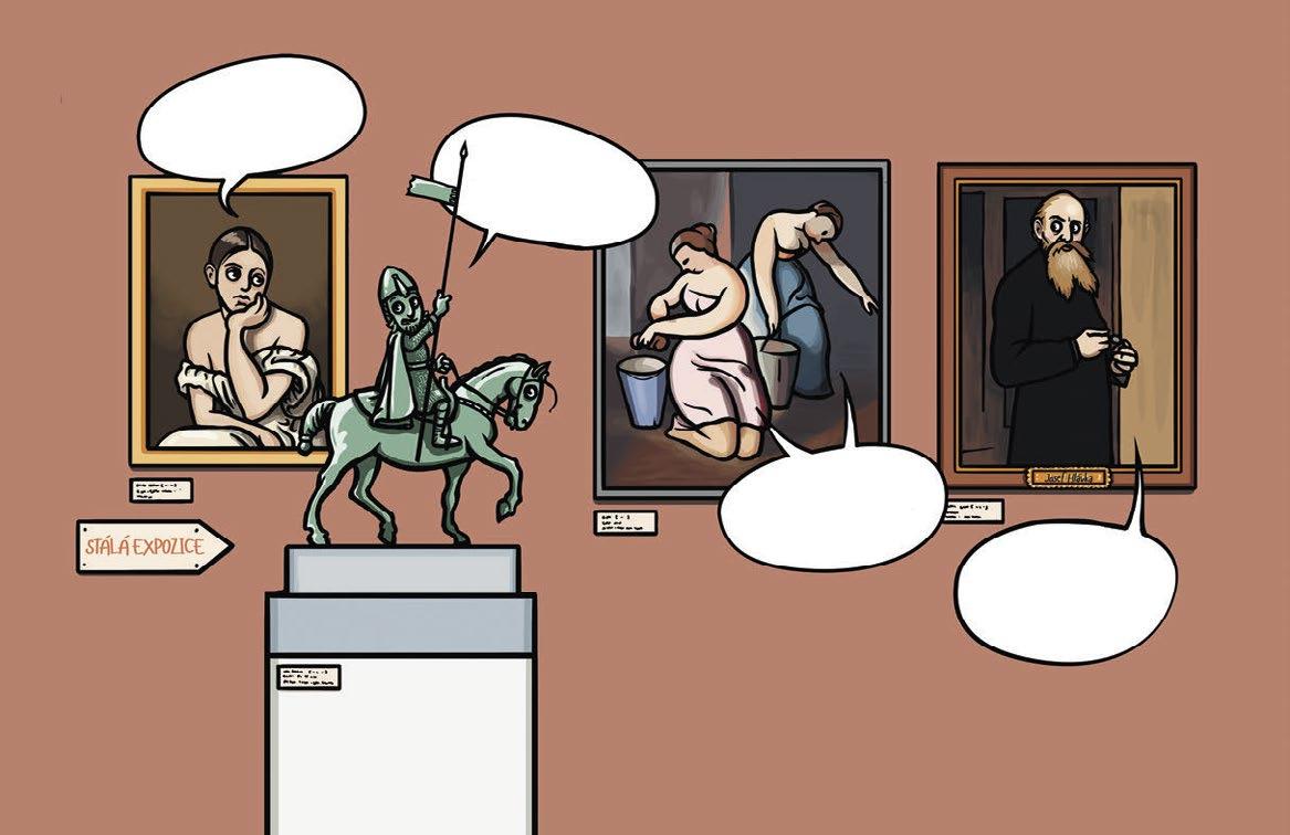 Dobrý den, děti, vítáme vás v naší galerii. Jsme rádi, že jste se nebály, otevřely těžká vrzající vrata se starou, mosaznou klikou a vstoupily. Někdy si lidé myslí, že neumí malovat ani kreslit a že nerozumí tomu, co je na obrazech vystavených v galerii. Proto vrata ani neotevřou. Domnívají se, že když neznají žádné malíře ani sochaře, není pro ně galerie vhodným místem k návštěvě. Také mají obavy, že nebudou vědět, co si o obrazech myslet a jak se v galerii vlastně chovat. Možná právě přemýšlíte, zda nějakou galerii ve vašem městě máte, případně si nejste jistí, zda jste byli v galerii nebo v muzeu. Nemyslete si, galerii si s muzeem často spletou i dospělí. Přitom taková galerie je rozhodně zajímavé místo. Pokud jste už v některé byly, dáte mi za pravdu. Jestliže ne, po přečtení této knížky tam určitě zajděte! Uvidíte, že nebudete litovat.