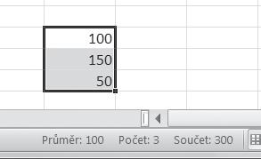 3. Excel zobrazí ve stavovém řádku výsledky základních výpočtů – obvykle součet, průměr a počet buněk s čísly.