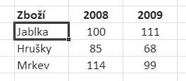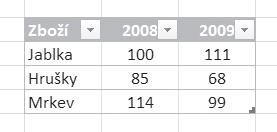 1. Klepněte kamkoliv do tabulky. Není třeba tabulku vybírat tažením myší.