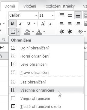 Vytvoření rámečku kolem buněk. Jestliže chcete kolem jedné nebo více buněk vytvořit plný rámeček, postupujte takto:
