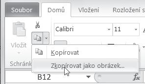 2. Na kartě DOMŮ ve skupině SCHRÁNKA klepněte na šipku u ikony KOPÍROVAT a z nabídky zvolte příkaz ZKOPÍROVAT