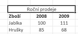 Sloučení více buněk do jediné. Nad tabulku často patří také její název, který můžete chtít zarovnat na střed tabulky.