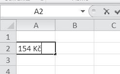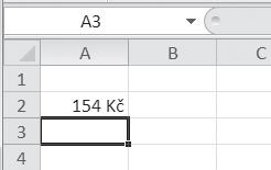 2. Do vybrané buňky zapište číselnou hodnotu a za číslo zapište Kč.