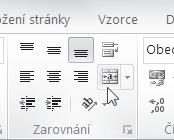 2. Na kartě DOMŮ ve skupině ZAROVNÁNÍ klepněte na ikonu nástroje ZALAMOVAT TEXT.