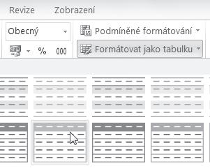 2. Na kartě DOMŮ ve skupině STYLY klepněte na FORMÁTOVAT JAKO TABULKU.