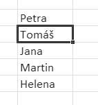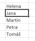 1. Klepněte na některou z buněk v seznamu. Není třeba vybírat celý seznam, nicméně seznam nesmí být přerušen prázdnou buňkou. Pokud by seznam obsahoval i prázdnou buňku, pak proveďte výběr oblasti buněk tažením myši.